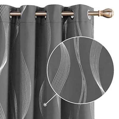 Deconovo Blackout Curtains 66x 90 Inches Super Soft Wave Line Foil Printed Thermal Insulated Window Treatment Eyelet for Living Room Dark Grey 2 Panels