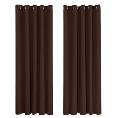 Deconovo Blackout Curtains for Living Room Super Soft Thermal Insulated Eyelet Bedroom 66 x 90 Inch Drop Chocolate 1 Pair