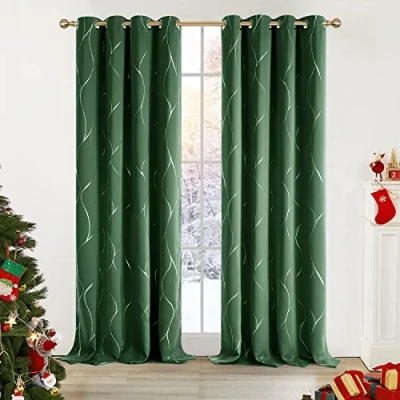 Deconovo Blackout Curtains Silver Wave Foil Printed Thermal Insulated Eyelet for Bedroom Dark Forest W55 x L114 One Pair