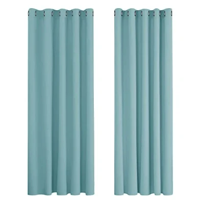 Deconovo Curtains Blue Super Soft Solid Thermal Insulated Eyelet Blackout for Bedroom 66 x 90 Inch Drop 1 Pair Sky