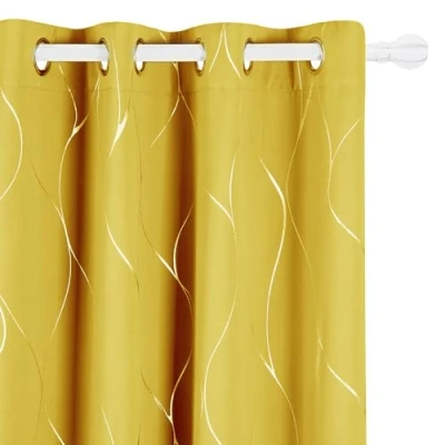 Deconovo Eyelet Room Darkening Curtains, Silver Wave Line Foil Printed Thermal Insulated Curtains for Boys Bedroom, 52 x 54 Inch, Mellow Yellow, 2 Panels