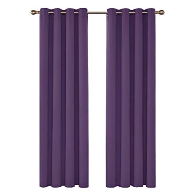 Deconovo Home Decoration Blackout Curtains Thermal Insulated Eyelet Energy Saving for Girls Bedroom Dark Purple W55 x L102 Inch One Pair