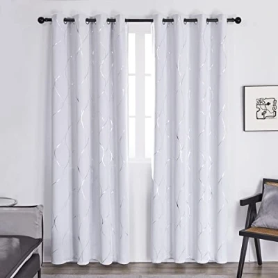Deconovo Home Decoration Thermal Insulated Wave Line Foil Printed Room Darkening Eyelet Curtains for Girls Bedroom Silver Grey W55 x L69 One Pair