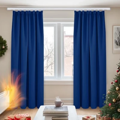 Deconovo Noise Reducing Thermal Insulated Curtains Blackout Pencil Pleat for Boys Living Room Blue W55 x L96 Inch 2 Panels