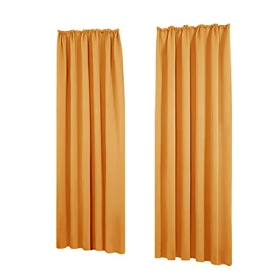 Deconovo Noise Reduction Blackout Curtains Pencil Pleat Thermal Insulated Panels for Bedroom W55 x L69 Inch Orange One Pair