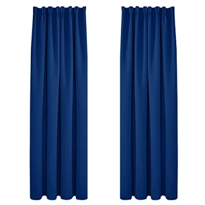 Deconovo Pencil Pleat Curtains Energy Saving and Noise Reducing Thermal Insulated Blackout for Bedroom W55 x L87 Inch 2 Panels Blue
