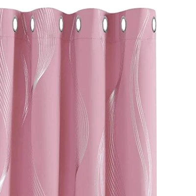 Deconovo Pink Blackout Curtains 46 x 72 Inch Wave Line Foil Printed Thermal Eyelet Energy Efficiency Room Darkening for Bedroom Two Panels