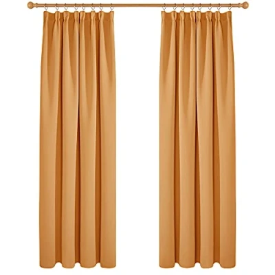 Deconovo Set of 2 Blackout Curtains for Living Room, Bedroom, Ruffle Tape, Modern Design, Girl, Thermal Insulation, Anti Cold, Dining Orange, 140 x 245 cm