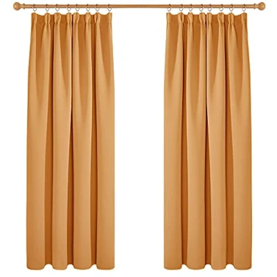 Deconovo Set of 2 Blackout Curtains Living Room Modern Design Curtain with Ruffle Tape for Girls, Thermal Insulated Curtain, Anti Cold, Dining Room, Orange, 140 x 180 cm