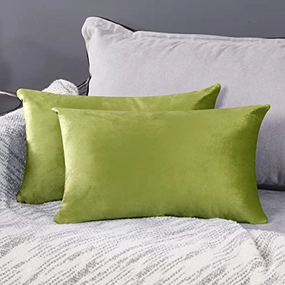 Deconovo Set of 2 Crushed Velvet Cushion Covers 30cm x 50cm 12x20 Inches Rectangle Throw Pillow Cases for Bedroom with Invisible Zipper Piquant Green