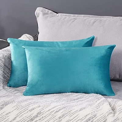 Deconovo Set of 2 Home Decorative Crushed Velvet Cushion Covers 30cm x 50cm 12x20 Inches Throw Pillow Cases Rectangle for Bedroom with Invisible Zipper Turquoise