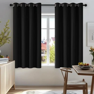 Deconovo Solid Curtains Window Treatment Room Darkening Blackout Thermal Insulated Eyelet for Bedroom 52"x 54" Black 1 PAIR