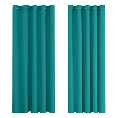 Deconovo Super Soft Curtain Panels Solid Thermal Insulated Eyelet Bedroom Blackout Curtains 66 x 72 Inch Turquoise 2