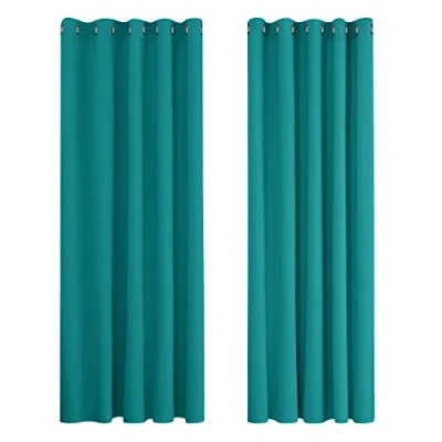 Deconovo Super Soft Curtain Panels Solid Thermal Insulated Eyelet Bedroom Blackout Curtains 66 x 90 Inch Turquoise 2