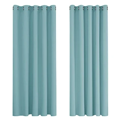 Deconovo Super Soft Solid Thermal Insulated Eyelet Blackout Curtains for Kids 66 x 72 Inch Drop 1 Pair Sky Blue