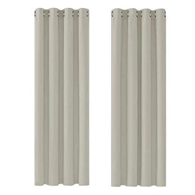 Deconovo Super Soft Solid Thermal Insulated Eyelet Blackout Curtains for Living room 55x69 Inch Two Panels Light Beige