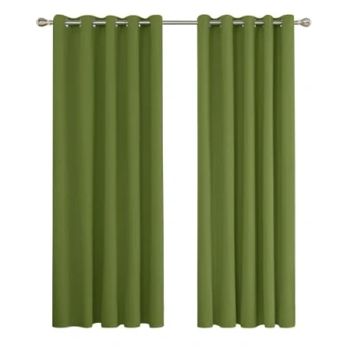 READY MADE – 2 green curtain panels per pack (each panel 168 cm wide x 229 cm long) with 4cm eyelets, easy to hang; measure your curtain pole (not the window), choose total curtains width 1.5–2 times your pole, and measure drop from the pole to where you want the curtains to end. PREMIUM TEXTURE - Features a lightweight soft touch mate texture and perfectly executed stitches, this indoor bedroom curtains are sold ready to hang. This decorative eyelet blackout curtains for bedroom, living room and kids room dresses your window beautifully and add a touch of magic and modernity to your room. BLACKOUT EFFECT - Deconovo thermal blackout curtains are manufactured using innovative triple weave technology (Dark colours work better). Bedroom blackout curtains will block 75%–85% of light, stopping the outside world from creeping into your private moments. ENERGY SAVING - Bedroom blackout curtains will help on reducing energy bills by keeping light out and cool homes during hot summers and keeping the cold out during the winter months. EASY CARE - Machine washable. Gentle cycle, warm iron. Do not bleach, do not tumble dry. If there are wrinkles, you just need to hang for a while or iron it in warm temperature, the wrinkles will gradually disappear. At Deconovo, our customer service is only one e-mail away to help you choose the size and solve ALL your after sales issues.