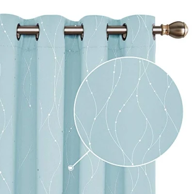 Deconovo Thermal Curtains Kids Blackout Noise Rducing Silver Dotted Line Foil Printed Eyelet for Bedroom 46x90 Inch Light Blue 2 Panels