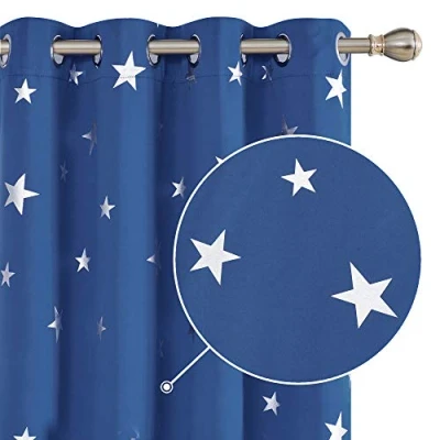 Deconovo Thermal Insulated Blackout Curtains Eyelet Silver Star Foil Printed for Kids Bedroom 52x72 Inch Blue 2 Panels