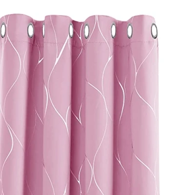 Deconovo Thermal Insulated Blackout Curtains Silver Wave Line Foil Printed Eyelet Baby Nursery for Kids Bedroom Pink W55 x L96 One Pair