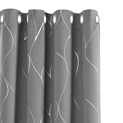 Deconovo Thermal Insulated Blackout Curtains Silver Wave Line Foil Printed Eyelet for Bedroom Light Grey W55 x L96 One Pair