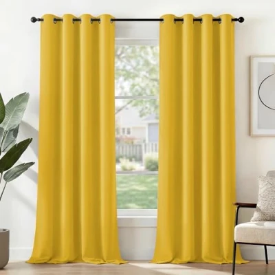 Deconovo Window Treatment Curtains Thermal Insulated Decorative Soft Energy Saving Room Darkening Eyelet for Kid 55 x 106 Inch Mellow Yellow Set of 2