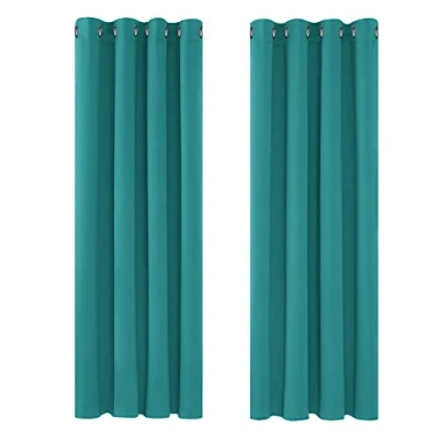 Deconovo Window Treatment Super Soft Solid Thermal Insulated Eyelet Bedroom Blackout Curtains for Kids Turquoise 46x84 Inch 2 Panels
