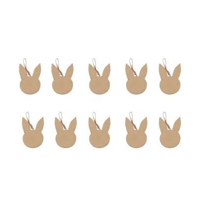 Décopatch AC843Cpack Un Lot de 10 Supports en Papier brun mâché 1x6,5x9 cm, Tête Lapin Plate à suspendre