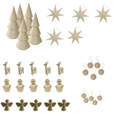 A SET OF 35 CHRISTMAS SUPPORTS: create a real Christmas atmosphere: 7 x 5 supports (reindeer, snowmen, fir trees, angels, baubles and stars for hanging). TO Customise: In brown papier mâché, mix techniques: paint, collage, felt-tip pens, glitter - ideal for family fun. TO COMBINE WITH DECOPATCH PAPER: tear or cut a few pieces of Decopatch paper, approx. 2x2 cm - Apply glue to the backing. Place a piece of paper on the glued surface and apply a second layer of glue. HAND-MADE: composed of newspaper and rice glue, each support is unique. DECOPATCH is a French brand belonging to the Clairefontaine Rhodia group. We offer quality products for Customisation, decoration and creative hobbies., Manufacturer: Clairefontaine Rhodia