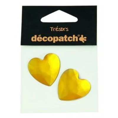 Décopatch Ref BJ025O Trésors Plastic Embellishments 30mm Decorative Heart Shaped Gems Ideal for Decorating Décopatched Items Yellow, Pack of 2