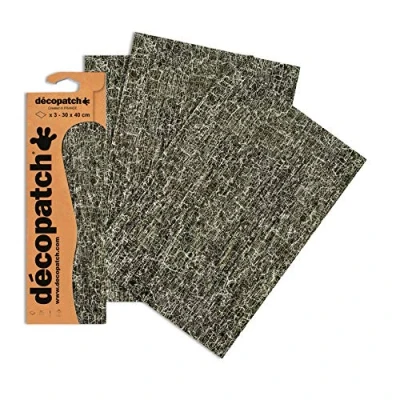 Décopatch Ref C469O Black Cracked Effect Print Paper Pack Each Sheet 30 x 40cm, of 3 Sheets Best Used With Décopach Glue & Varnish,