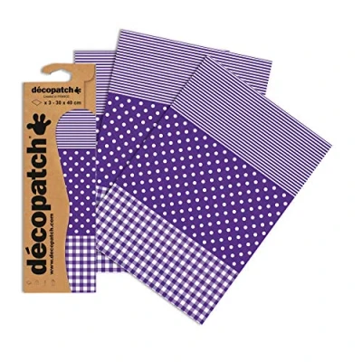 Décopatch Ref C488O Purple Spots, Stripes and Gingham Print Paper Pack Each Sheet 30 x 40cm, of 3 Sheets Best Used With Décopach Glue & Varnish,