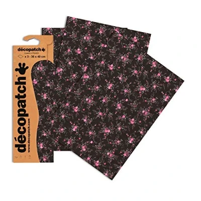 Décopatch Ref C565O Black & Pink Floral Pattern Paper Pack Each Sheet 30 x 40cm, of 3 Sheets Best Used With Décopach Glue Varnish,