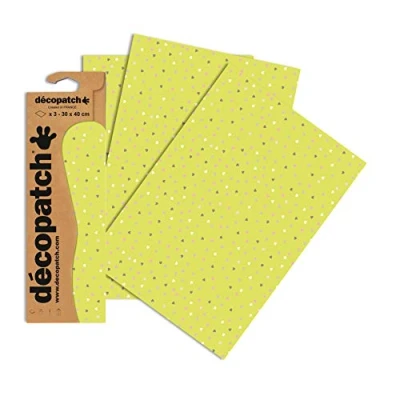 Décopatch Ref C687O Green Mini Heart Pattern Paper Pack Each Sheet 30 x 40cm, of 3 Sheets Best Used With Décopach Glue & Varnish,