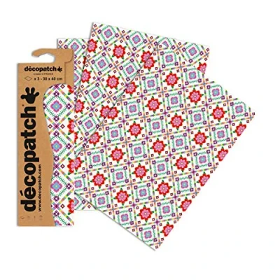 Décopatch Ref C753O Bright Mesmerising Paper Pack Each Sheet 30 x 40cm, of 3 Sheets Best Used With Décopach Glue & Varnish, Multicoloured