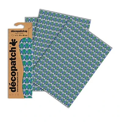 Décopatch Ref C769O Blue & Green Ceramic Effect Paper Pack Each Sheet 30 x 40cm, of 3 Sheets Best Used With Décopach Glue Varnish,