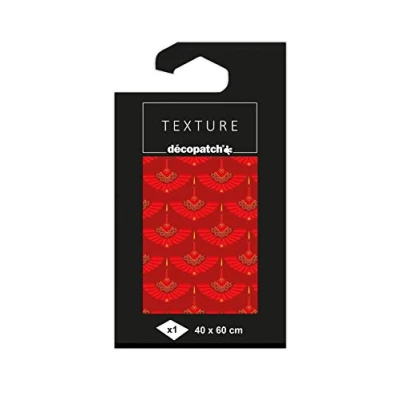 Décopatch Ref TD815C Texture Collection Red & Gold Oriental Fans Pattern Contains 1 Sheet of 40 x 60cm Textured Paper, Foil Printing for Metallic Effects