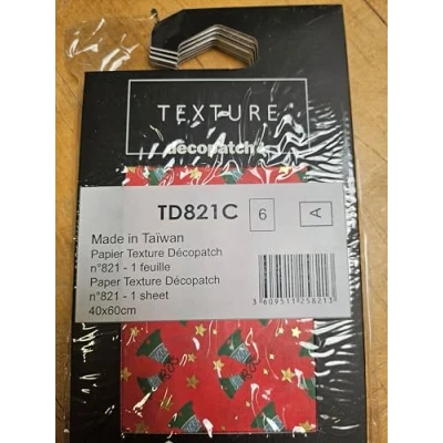 Décopatch Ref TD821C Texture Collection Red & Green Christmas Bells Contains 1 Sheet of 40 x 60cm Textured Paper, Foil Printing for Metallic Effects