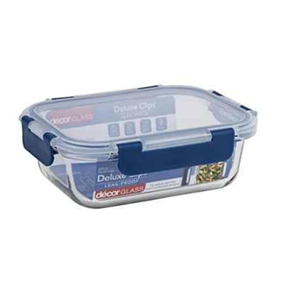 630ml Glass Storage Container - Sleek food storage containers to help you get organised and reduce food waste Leakproof Deluxe Clips Container - Featuring a seamless airtight lid with secure clips to keep food fresher for longer Stacking & Storing - Flat lids for easy stacking to maximise even the smallest storage space Easy to Clean - Dishwasher safe with removable lids for easy cleaning Reusable & Durable - Décor have been making lives easier for over 60 years with homewares that are functional, affordable and made to last