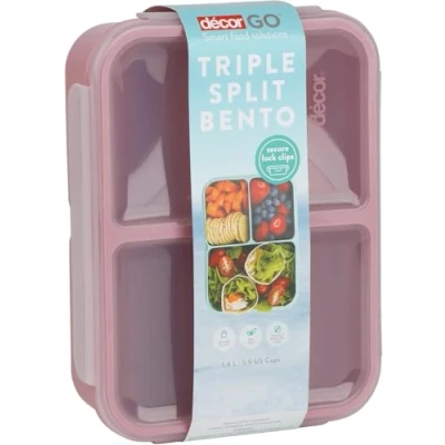 Décor Go Triple Split Bento Lunch, Box BPA Free, Airtight & Leak Resistant, 3 Compartments to Arrange Meals, Salads, Snacks, Food Prep Container with Lid, Microwave, Freezer Dishwasher Safe, 1.4L