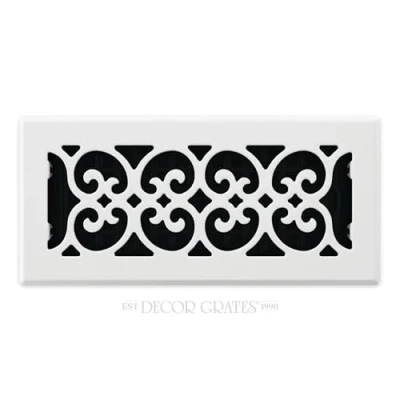 Scroll Design Steel Plated - Painted White Finish floor register Easy to install - Just drop into vent - no tools required Metal damper boxes rust and seize up, so we make our damper boxes with high impact plastic. This is not a cheaper option, it’s the best option Available in a variety of styles and finishes to match any decor Filter retainer and filter are sold separately Useful Tip: Because of increased floor cleaning during this pandemic, we recommend removing your steel floor registers before cleaning your floor. The floor registers can simply be cleaned using a dry cloth. Frequent exposure to water and cleaning detergents will accelerate the rusting process, Weight: 1.15 Pounds, Manufacturer: Decor Grates