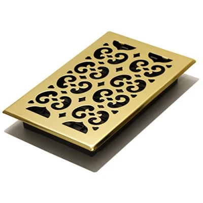 Scroll Design steel plated - Bright Brass finish floor register Easy to install - Just drop into vent - no tools required Metal damper boxes rust and seize up, so we make our damper boxes with recycled high impact polystyrene; this is not a cheaper option, it’s the best option Available in a variety of styles and finishes to match any decor Crafted for long trouble free operation, Manufacturer: Decor Grates
