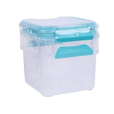 Décor Large Food Storage Containers 2 Pack x 1.4L Reusable Plastic Airtight Fresh Seal Clips Microwave, Freezer & Dishwasher Safe Capacity