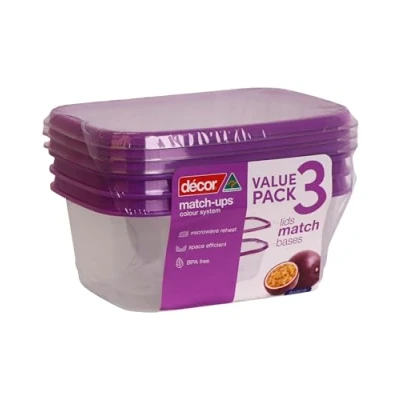 A well-organised kitchen is critical; when it comes to food storage. The Décor 500ml match-up basics meal prep tupperware box in Purple features handy measurement graduations & scratch-proof lids. These small containers are perfect for keeping your food fresh and ready to use. The Décor plastic food containers with lids are microwave, freezer and dishwasher safe whilst featuring a handy graduation marking & a specially moulded silicone seal to ensure a tight seal. The Décor match-up basics containers are the perfect way to store your food; the modular, stackable & deep nesting design means that you can easily stack multiple boxes on top of each other & maximise your limited space in your fridge or pantry. Colour-coded food storage containers - Find the suitable lid every time with the Décor match-up basics food storage containers. It is made from a clear durable, BPA-FREE plastic & featuring a unique colour-coded match system. Décor have been making re-useable products such as water bottles; food storage containers, microwave safe tupperware, lunch boxes and snack tubs for Australians for over 60 years; our products are beautiful, functional, affordable and made to last.
