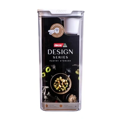 Décor Pantry Storage Container 3L with Quarter Cup Measure Design Series, Airtight, BPA Free, Modular Stackable, Dishwasher Safe, Australian Made
