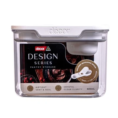 Décor Pantry Storage Container 920ml with Measuring Duster Design Series, Airtight, BPA Free, Modular Stackable, Dishwasher Safe, Australian Made
