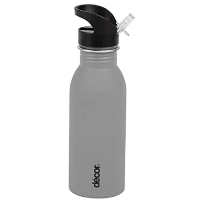 Décor Snap n Seal Soft Touch Stainless Steel Bottle Leakproof with Straw Ideal for On The Go, Gym & Travel 500ml, Grey