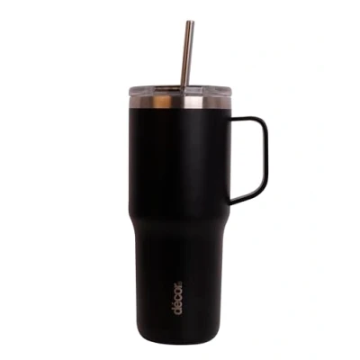 Décor Stainless Steel XL Travel Tumbler Vacuum Insulated for Superior Thermal Performance. Slide Open/Close 2 in 1 Cap Straw and spout. 24 Hour Cold Rating. Black Extra Large 880ml Capacity.