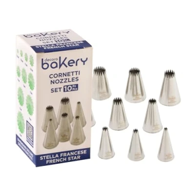 DECORA Set 10 French Star NOOZLES, Acciaio Inossidabile, Steel, 30 x cm