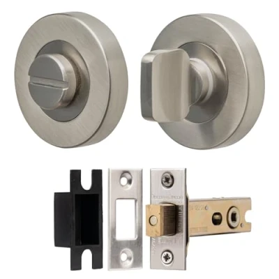 Modern WC thumb turn and release set with 3 in (76 mm) backset deadbolt, designed for internal bathroom, toilet and bedroom doors where dependable privacy is required. 56 mm diameter round rose with 11 mm low-profile rosette conceals fixings for a clean, contemporary look, coordinating with modern internal door handles and hardware. Fire rated bathroom door deadbolt delivers smooth, consistent operation, with a solid locking feel for everyday use on WC, ensuite, cloakroom and other internal privacy doors. Includes 5 mm spindle and matching colour 3 in deadbolt for straightforward fitting to most standard UK internal wooden doors in homes, apartments and light commercial spaces. Available in antique brass, matt black and brushed chrome finishes to match existing bathroom door furniture, WC locks, hinges and other modern interior hardware., Weight: 0.661386786 pounds, Manufacturer: Decoranddecor